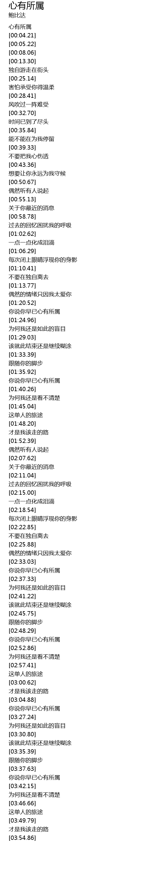 | [00:02.18] | xīn yǒu suǒ shǔ |
