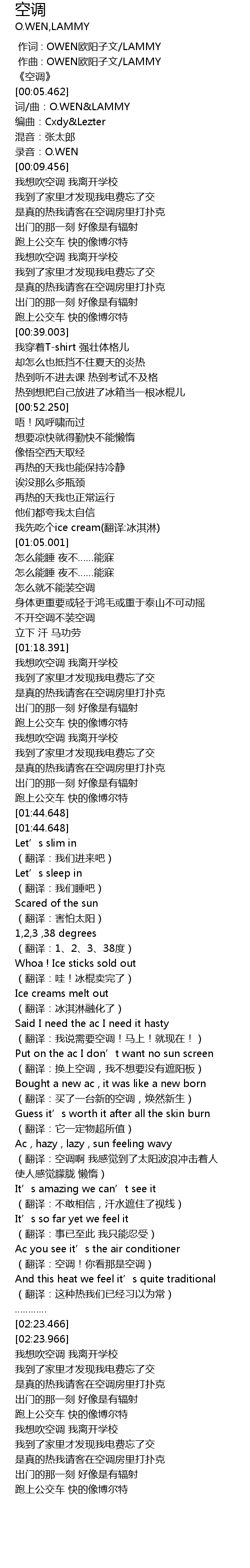 | [02:24.964] | 我想吹空调 我离开学校 |