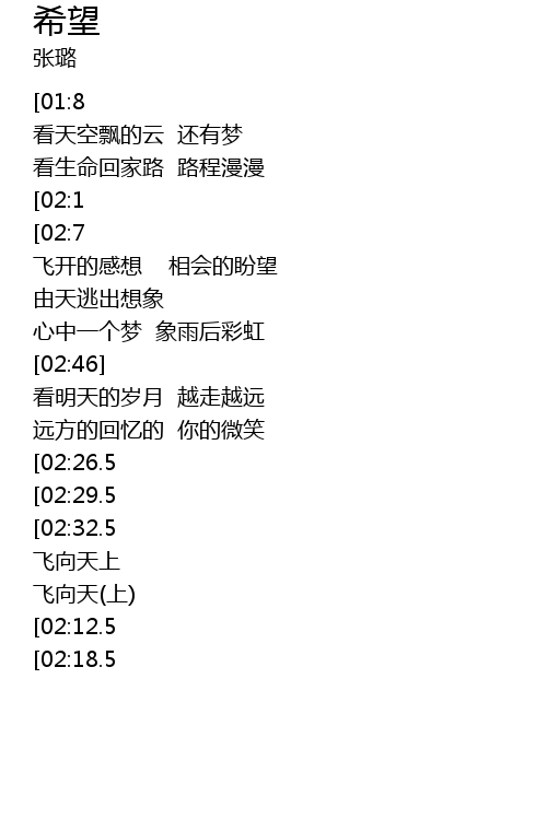 | [01:1.5][02:32.5] | xi wang de chi bang yi tian zhong zhang kai |