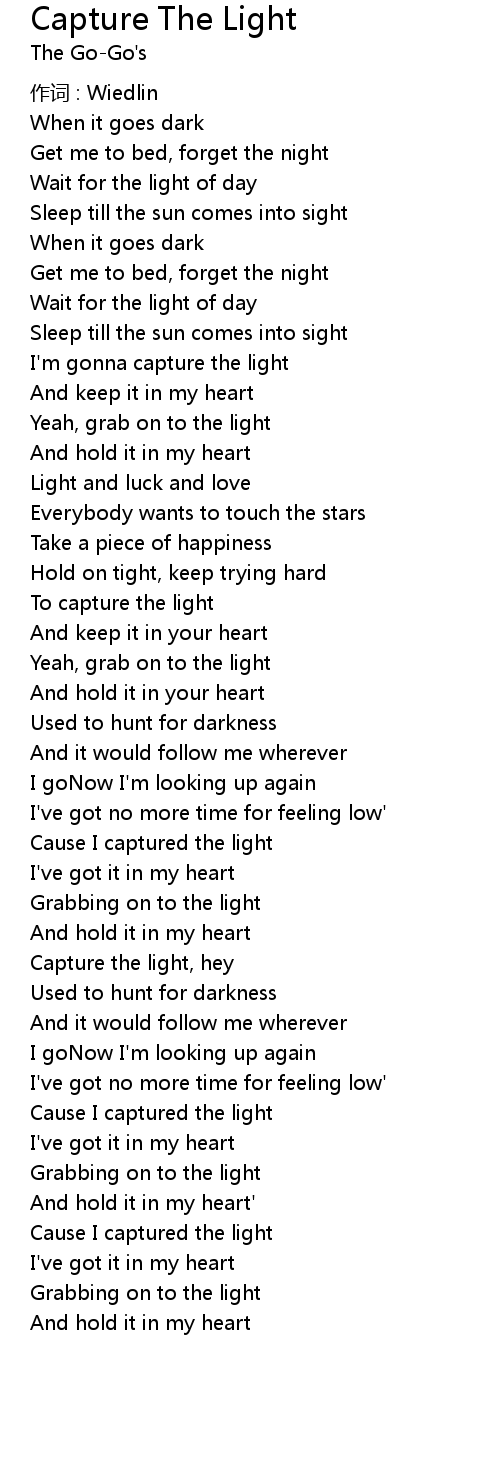 | I'm gonna capture the light | |
