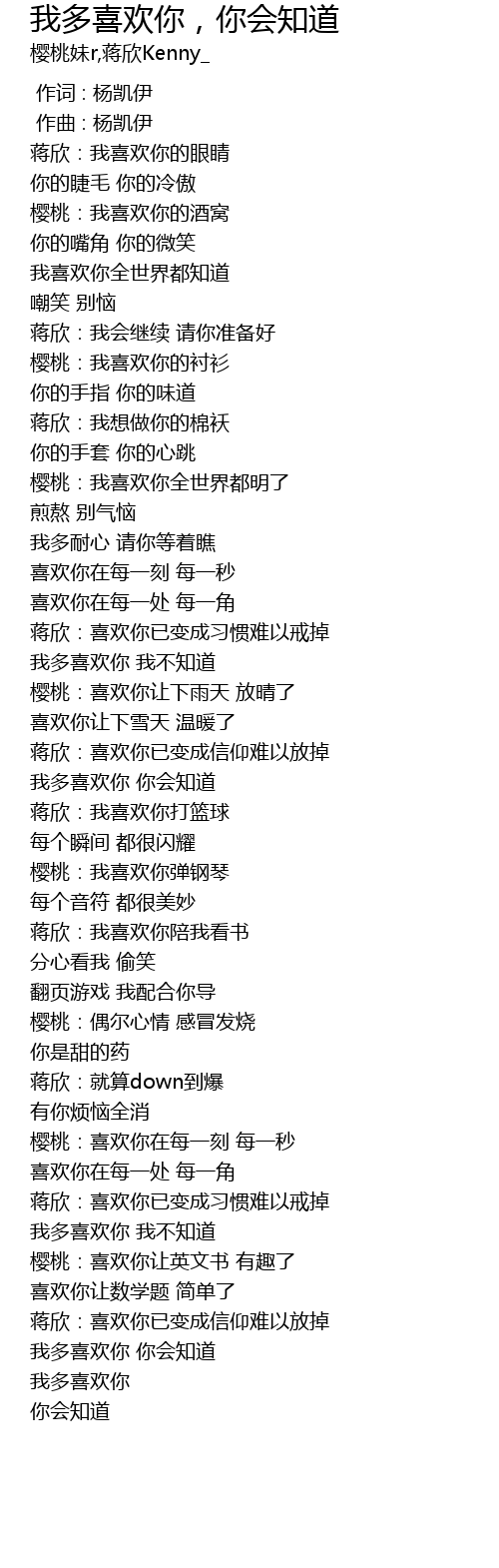 | [00:43.739] | 樱桃:我喜欢你全世界都明了 |