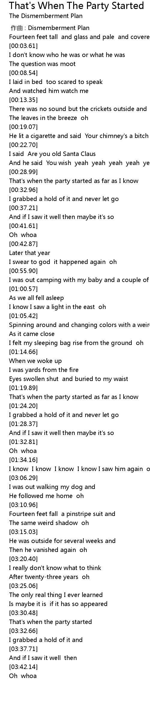 | [00:00.00] | zuò qǔ : Dismemberment Plan |