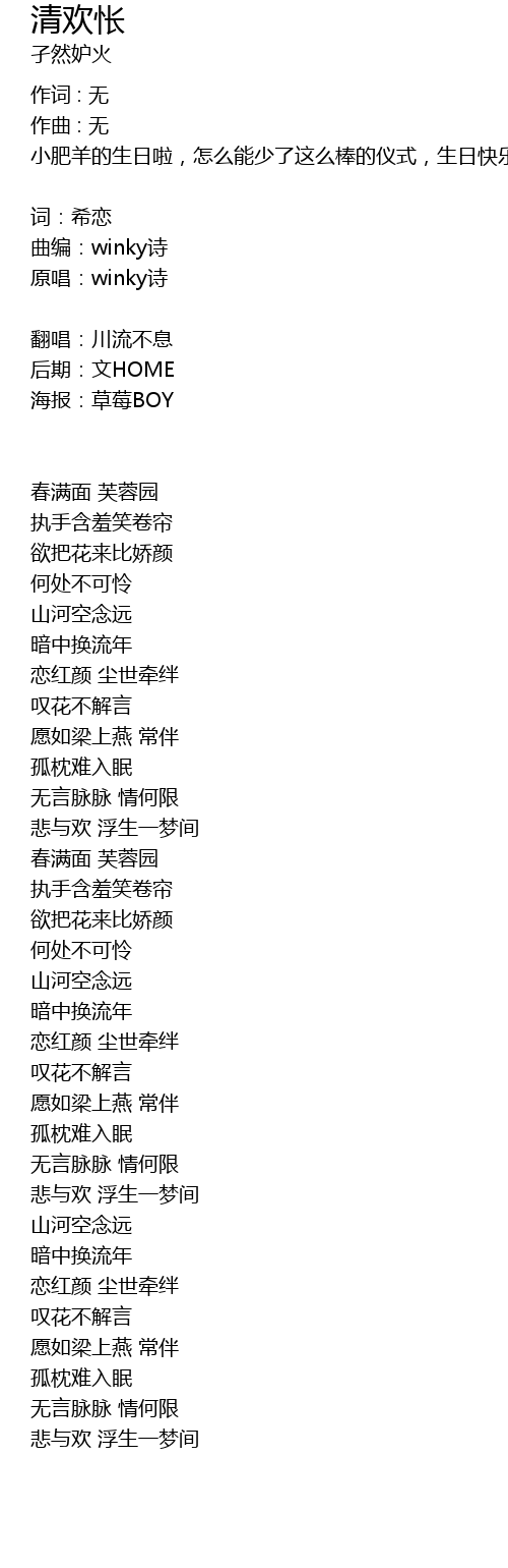 | 曲编:winky诗 | |