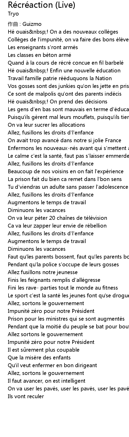| Vos gosses sont des junkies qu' on les jette en prison | |