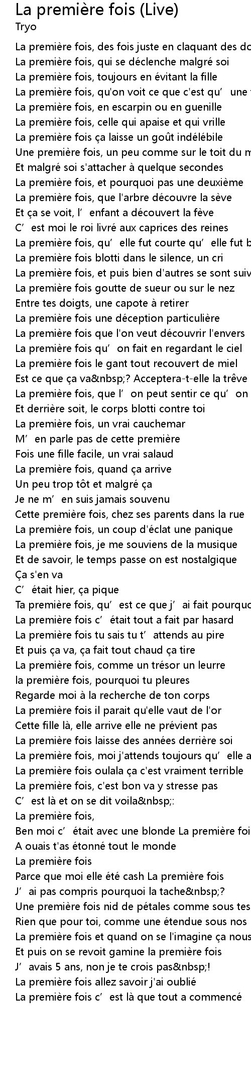 | La premie re fois, moi j' attends toujours qu' elle arrive | |