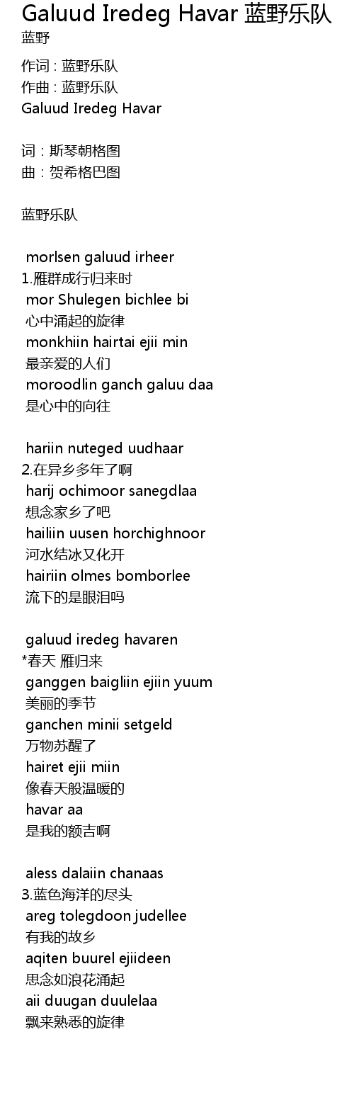 | Song | Galuud Iredeg Havar 蓝野乐队 |
