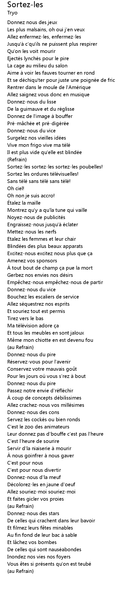 | Sortez-les sortez-les sortez-les poubelles! | |