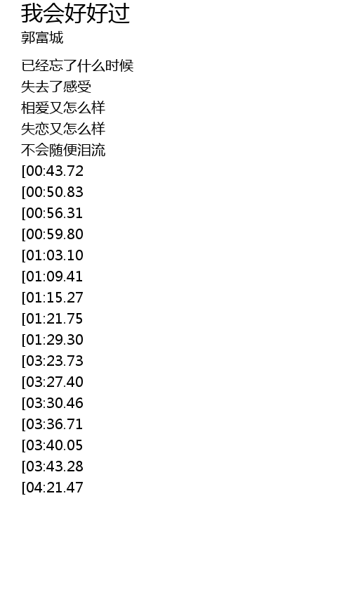 | [03:50.65][03:23.73][01:35.19] | 我会好好的过 |
