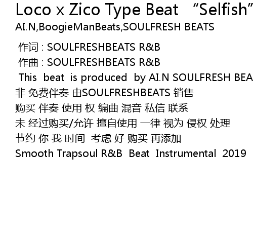 | Song | Loco x Zico Type Beat “Selfish” |
