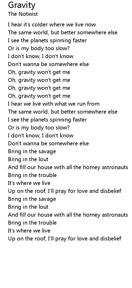 Oh, gravity won't get me |