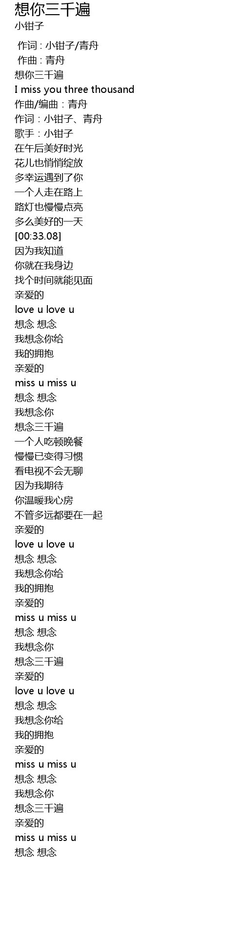 | [00:04.71] | xiǎng nǐ sān qiān biàn |