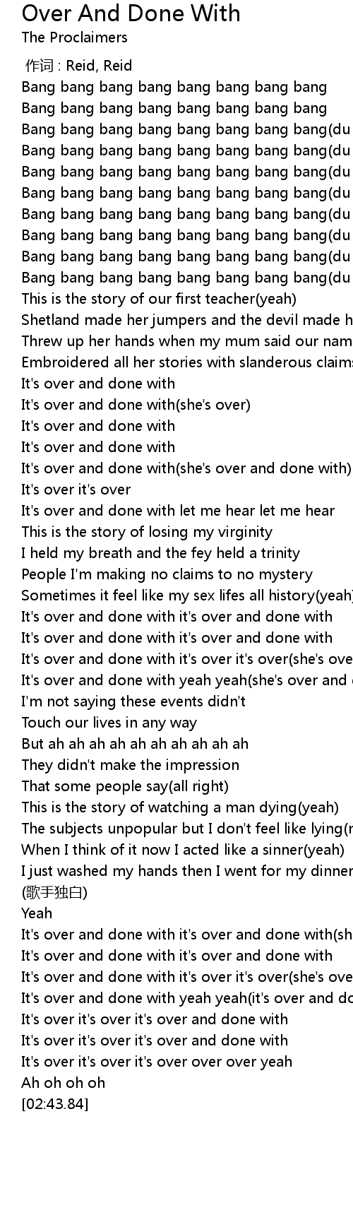 | [02:16.25] | It's over and done with it's over and done with |