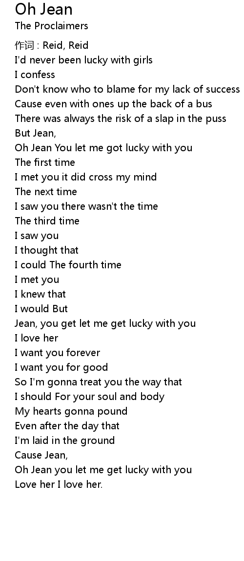 | Oh Jean you let me get lucky with you | |