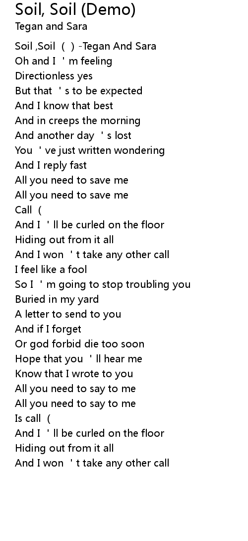 | [00:00.00] | Soil , Soil Tegan And Sara |