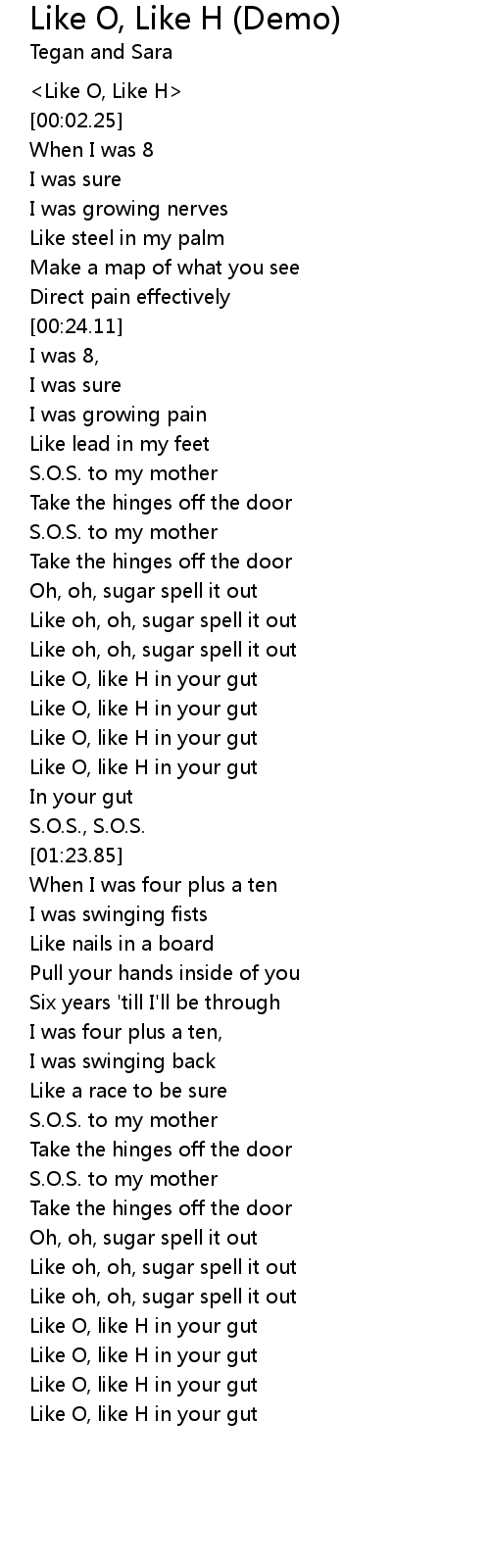Like O, Like H (Demo) Lyrics