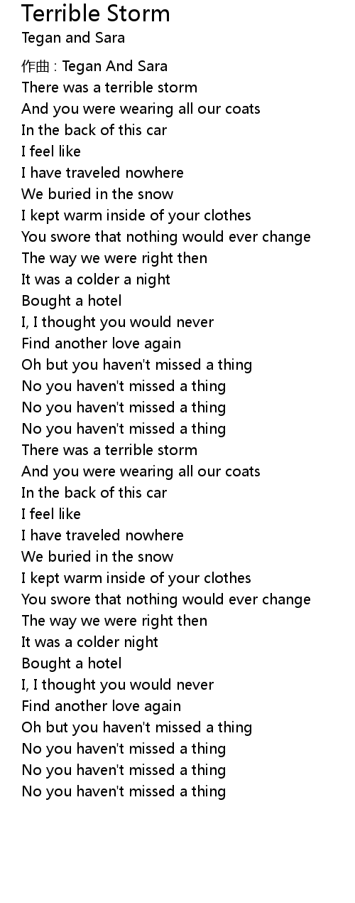 | Oh but you haven' t missed a thing | |