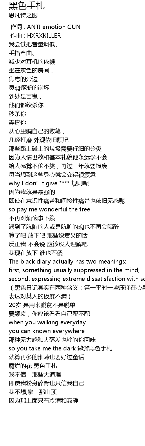 | [01:39.691] | (黑色日记其实有两种含义:第一平时一些压抑在心里的事,第二, |