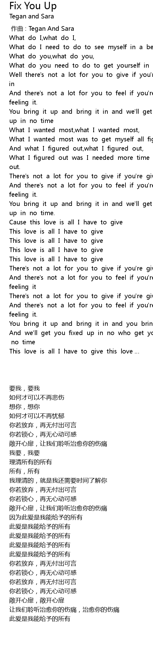 | [00:00.00] | 作曲 : Tegan And Sara |
