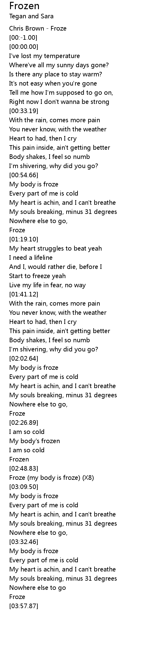 Froze (my body is froze) (X8) |