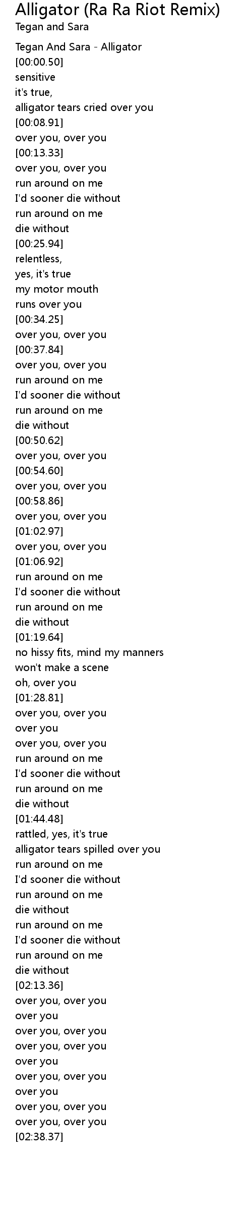 [00:00.00] Tegan And Sara - Alligator
