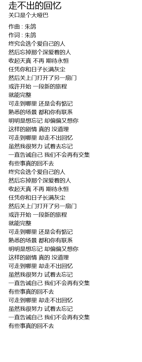 | kě zǒu dào nǎ lǐ què zǒu bù chū huí yì | |