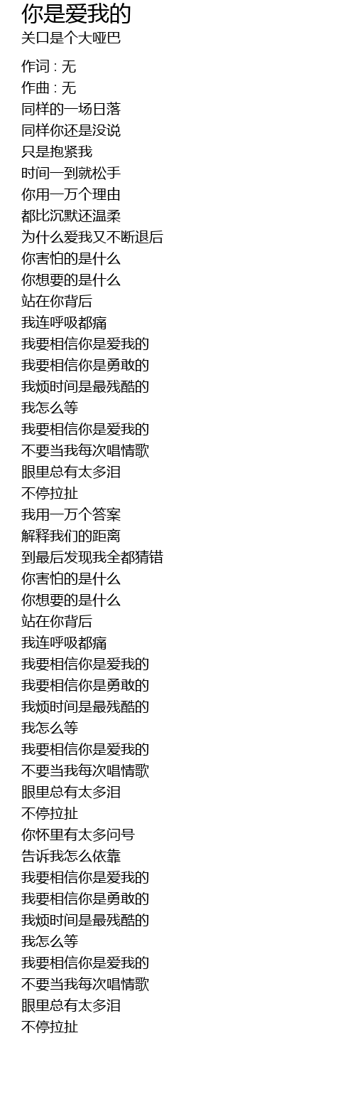 | wǒ yào xiāng xìn nǐ shì ài wǒ de | |