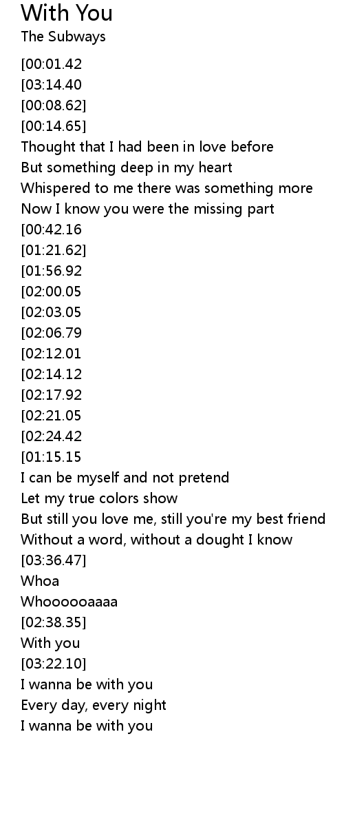 | [03:08.16][02:24.42][01:11.42] | To be, with you |