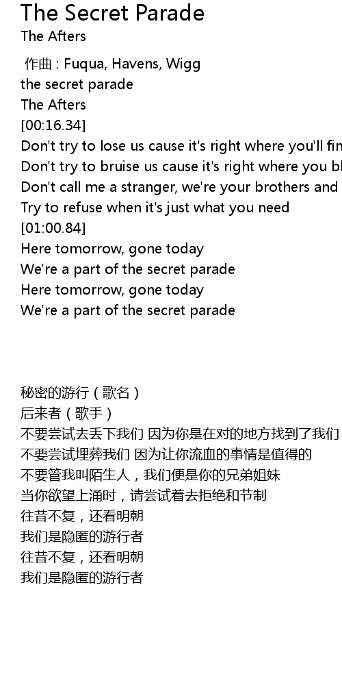 | [00:00.00] | the secret parade |