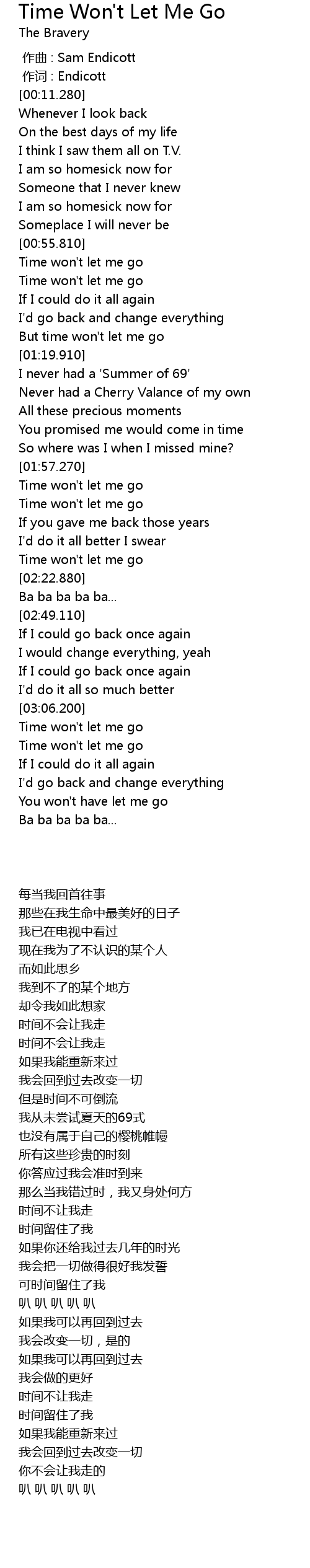 | [03:17.320] | Time won't let me go |