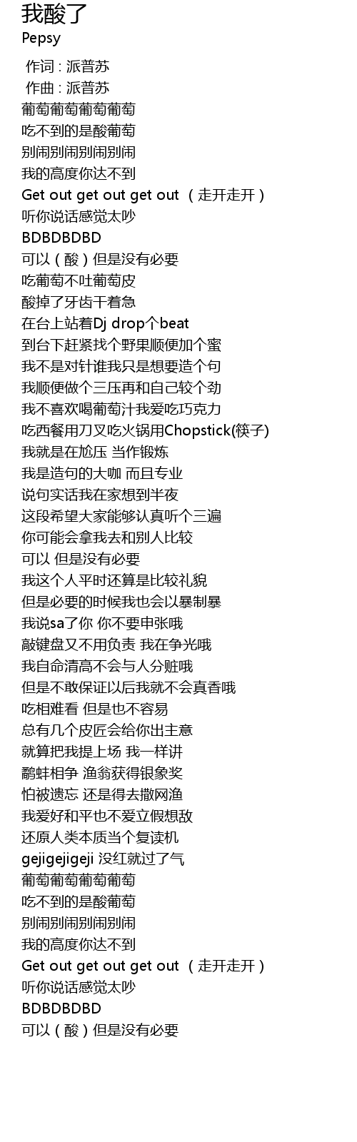 | Song | 我酸了 |