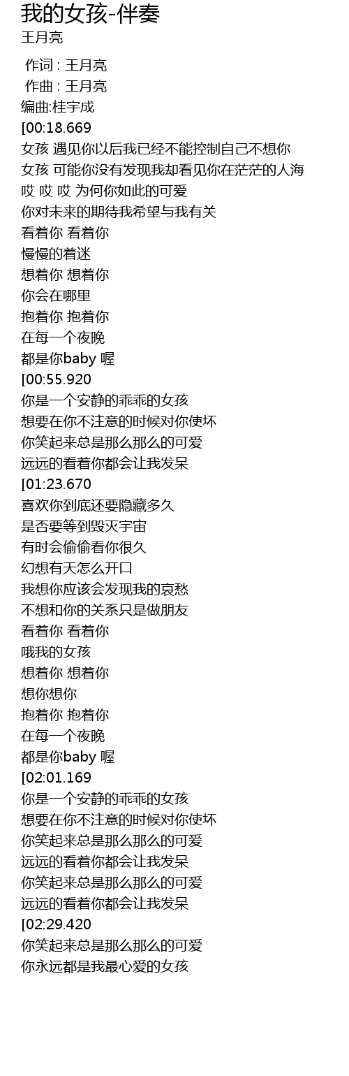 | [02:01.741] | 你是一个安静的乖乖的女孩 |