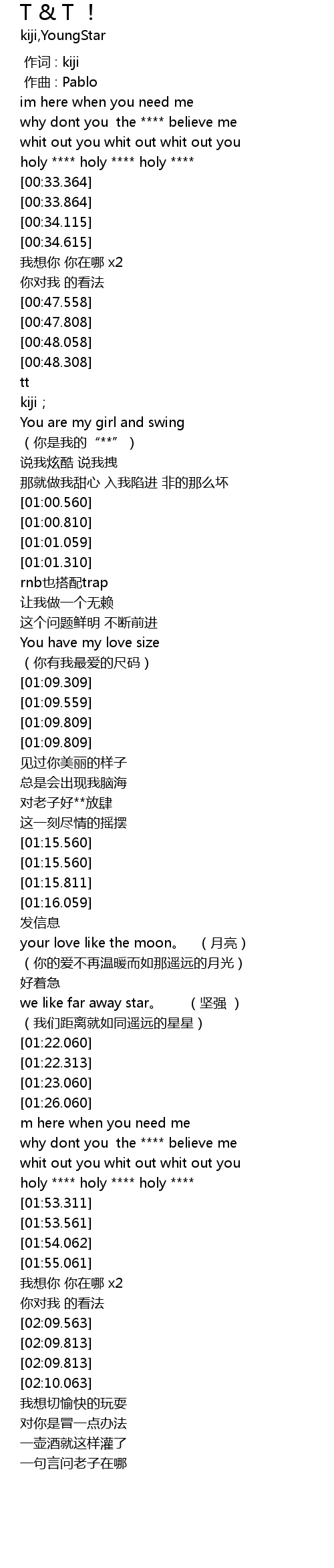 | [00:57.559] | (你是我的“**”) |