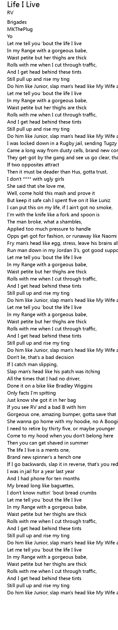 | [00:26.47] | Let me tell you 'bout the life I live |