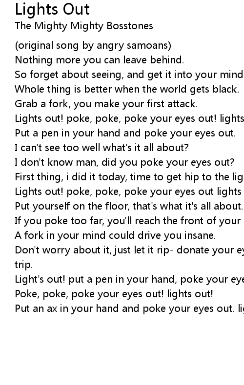 Lights out! poke, poke, poke your eyes out lights out! |