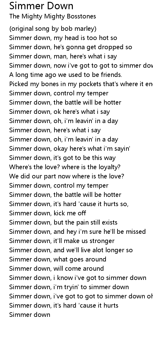Simmer down, i've got to got to simmer down ohh |