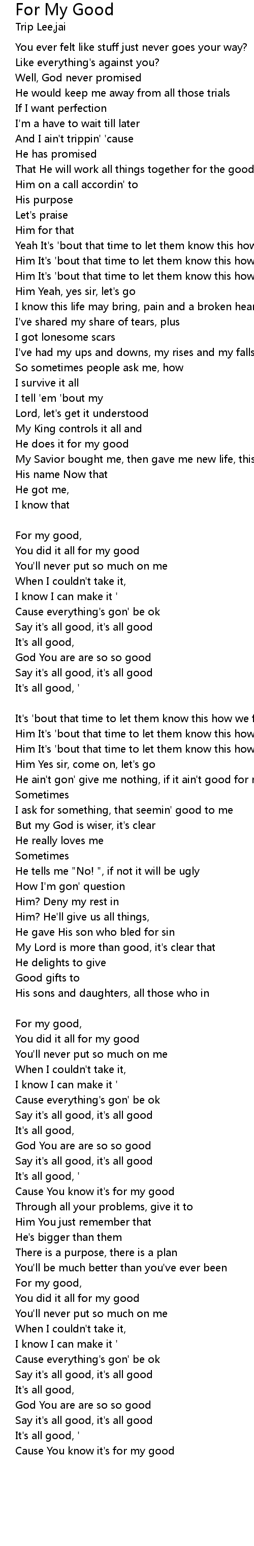 | Cause You know it's for my good [Trip Lee:] | |