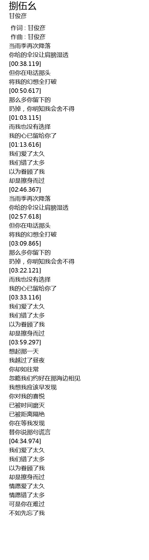 | [03:33.370] | wǒ men ài le tài jiǔ |