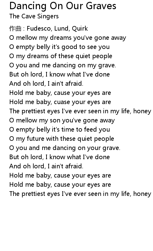 | O you and me dancing on your grave. | |