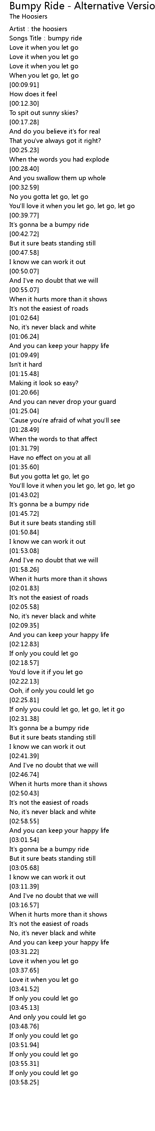 | [03:02.12] | It' s gonna be a bumpy ride |