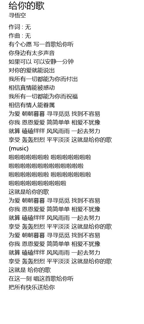 | yǒu gè xīn yuàn xiě yī shǒu gē gěi nǐ tīng | |