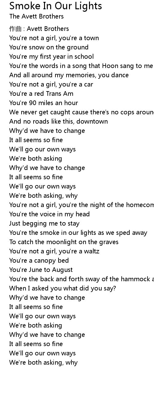 | You' re the smoke in our lights as we sped away | |
