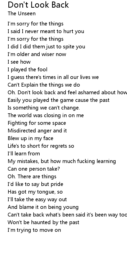 Oh. Don't look back and feel ashamed about how |