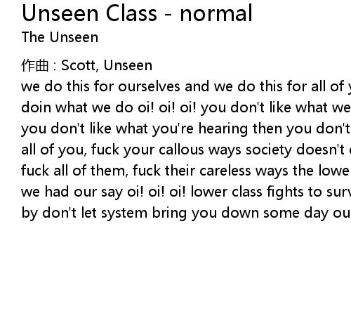 | we do this for ourselves and we do this for all of you it' s just the four of us doin what we do oi! oi! oi! you don' t like what we' re doing you can fuck off if you don' t like what you' re hearing then you don' t applaud oi! oi! oi! so fuck all of you, fuck your callous ways society doesn' t care what we have to say so fuck all of them, fuck their careless ways the lower class is unseen, its time we had our say oi! oi! oi! lower class fights to survive make just enough to get by don' t let system bring you down some day our time will come oi! oi! oi! |