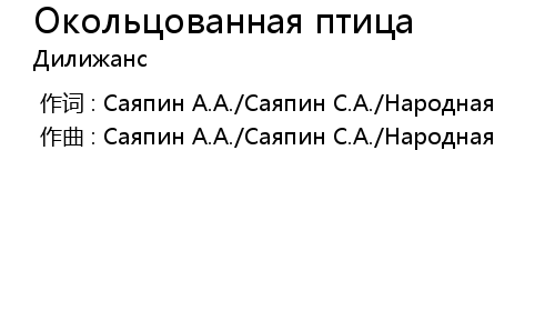 | [00:00.00-1] | 作词 : Саяпин А.А./Саяпин С.А./Народная |
