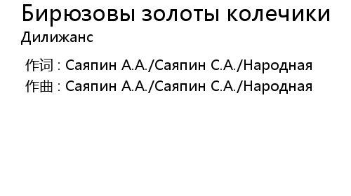 | [00:00.00-1] | 作曲 : Саяпин А.А./Саяпин С.А./Народная |