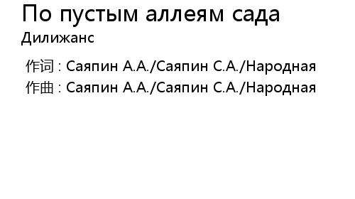 | [00:00.00-1] | 作曲 : Саяпин А.А./Саяпин С.А./Народная |