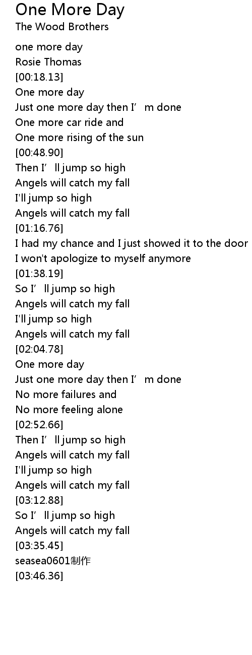 | [01:17.56] | I had my chance and I just showed it to the door |