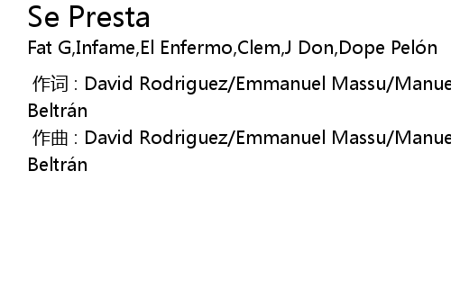 | [00:00.00-1] | 作词 : David Rodriguez/Emmanuel Massu/Manuel Rodriguez/Jorge Beltrán |