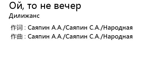 | Song | Ой, то не вечер |