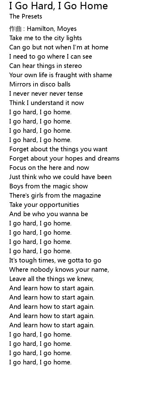 | I go hard, I go home. | |